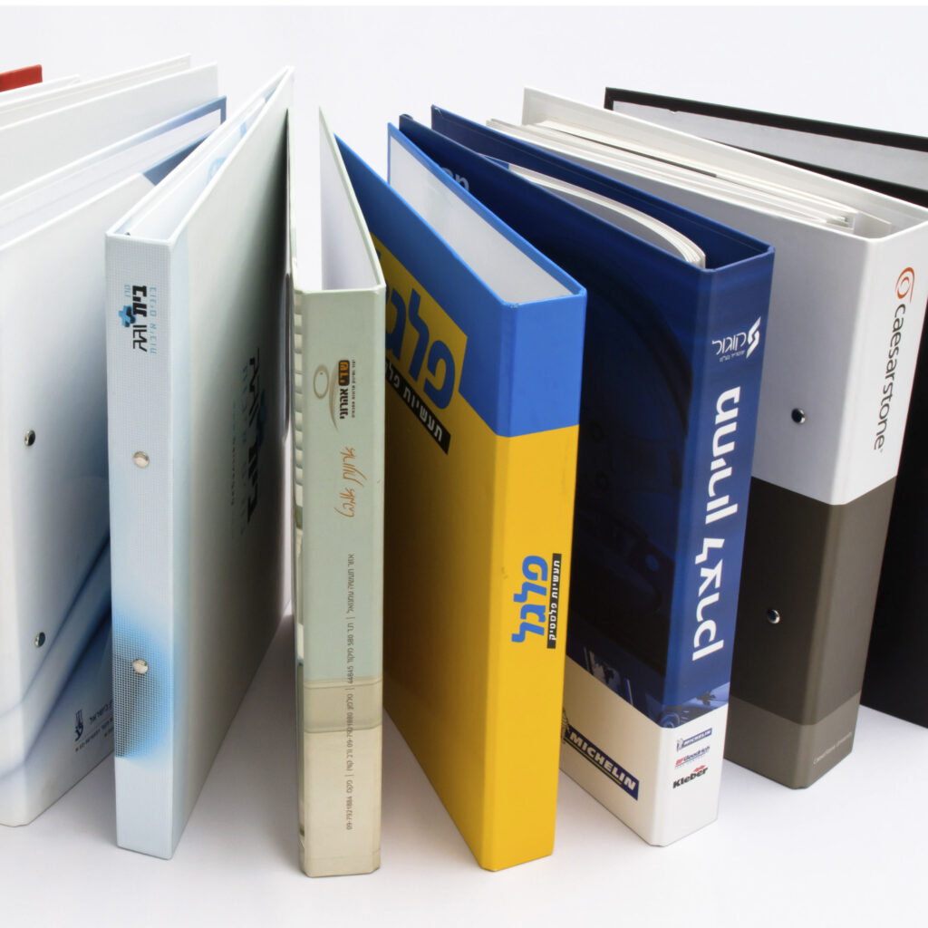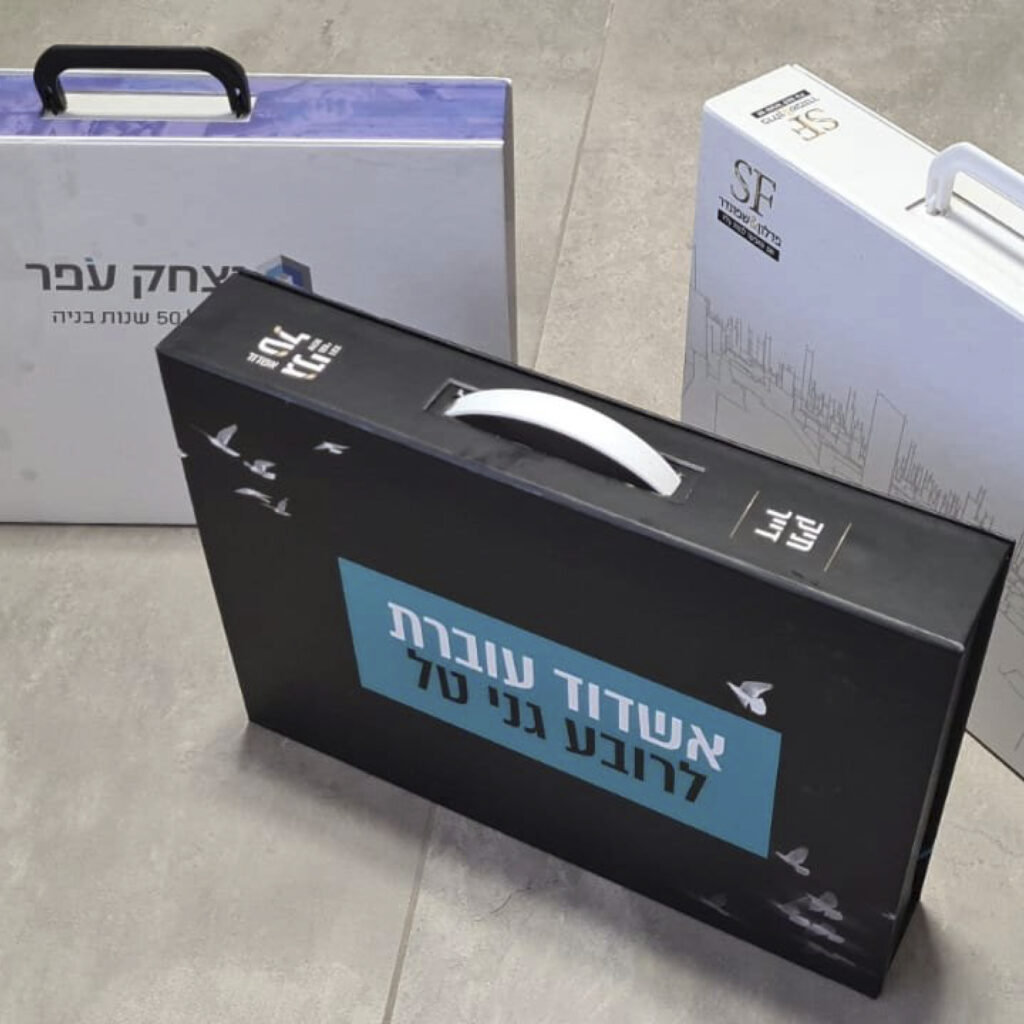 עבדנו עם מאות עסקים, יזמים, משרדי עיצוב ולקוחות מוסדיים, והפקנו אלפי פרויקטים – מתיקי דייר ומארזים יוקרתיים ועד ספרים, פולדרים וקלסרים בהתאמה אישית.