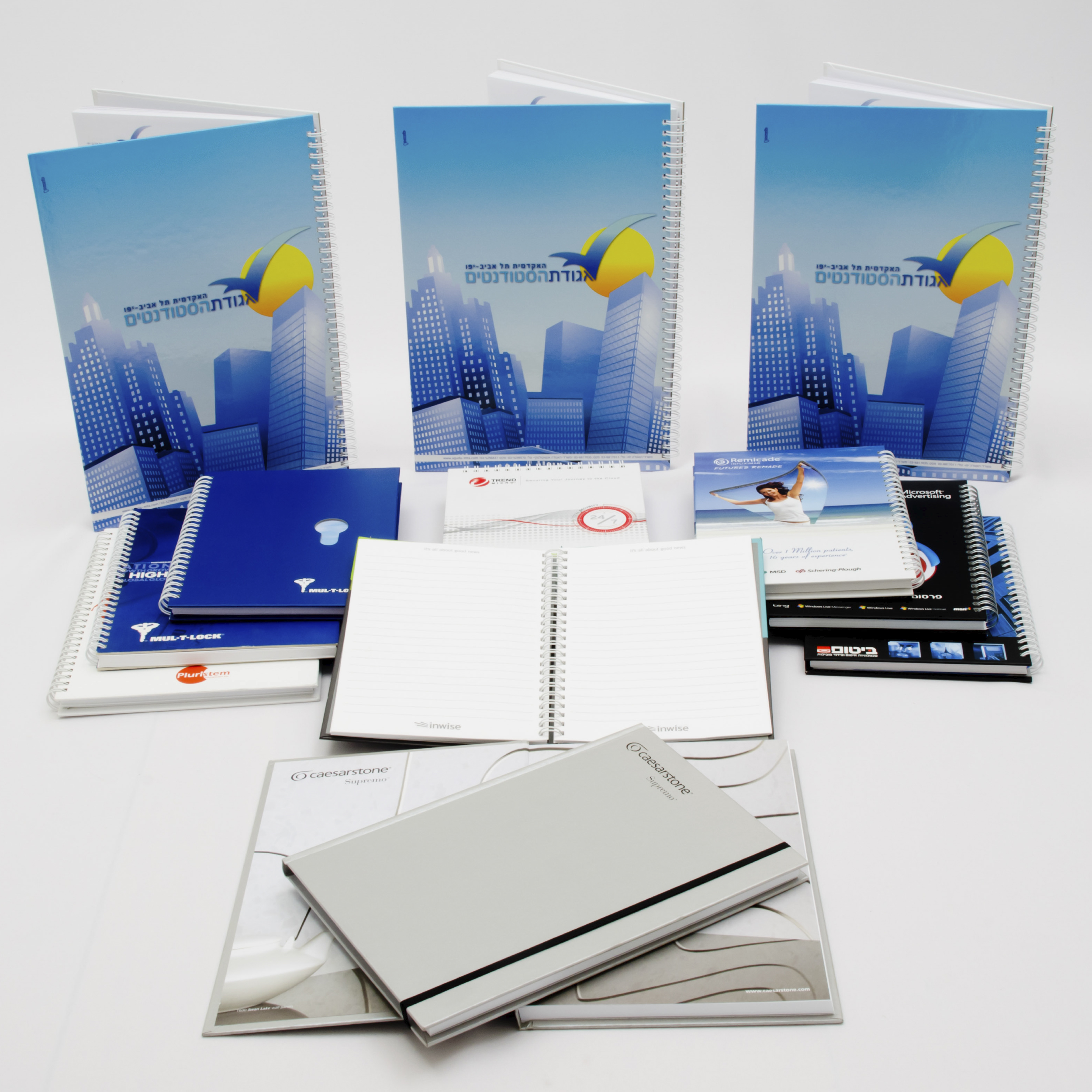 למטה תוכלו לראות מבחר מחברות ממותגות שהפקנו בהתאמה אישית – עם גימורים מיוחדים, כריכות מגוונות ומיתוג מדויק. כל המחברות הופקו תוך הקפדה על איכות החומרים והדפוס – כדי להבטיח מוצר פרקטי ונאה, שמשאיר רושם לאורך זמן.
